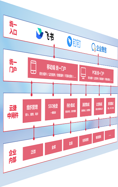 对协作平台提供支持服务,,,,支持企业应用与协作平台对接,,包含组织同步、、消息集成、、、待办集成等。。。支持目前主流的协作平台:钉钉、、、、企微和飞书。。。